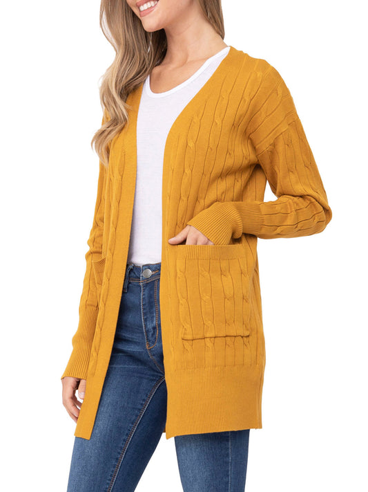 Long Sleeve Open Front Cable Knit Cardigan Sweater with Pockets